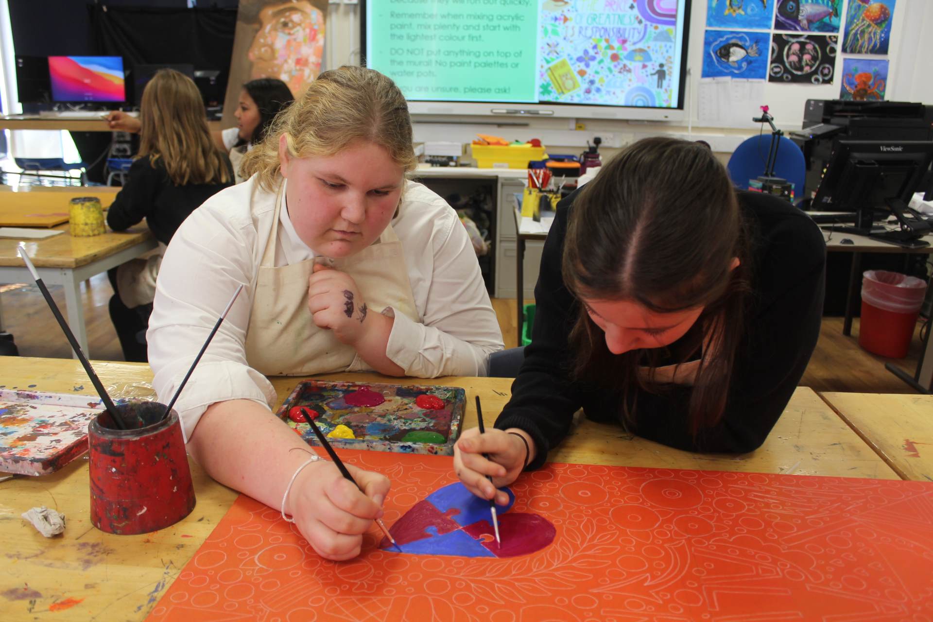 The Monday lunchtime Art Club has been buzzing with creativity as students work on a series of nine character murals.