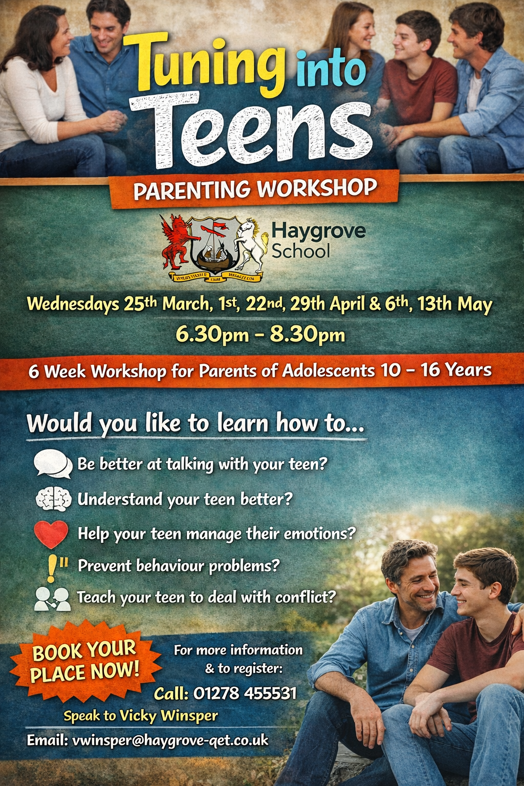 Tuning into Teens is a six-week programme designed to support parents and carers in developing emotionally responsive relationships with their teenagers. The sessions will be delivered by Mrs Winsper and Mrs Lesley.